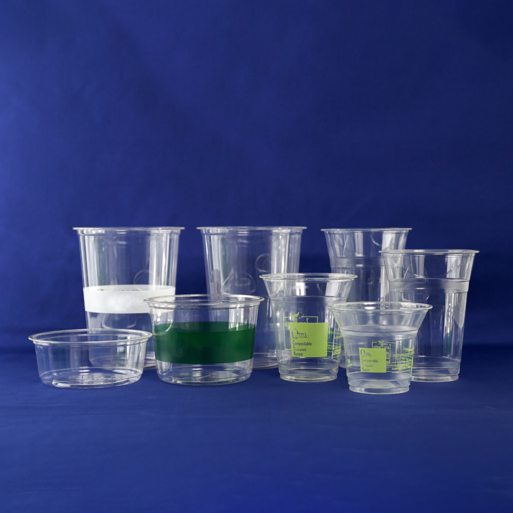 Suitable for cold drinks, these study, crystal-clear cups are a drop-in replacement for conventional plastics. Just one important difference: these cold cups will biodegrade in 60 to 90 days when commercially composted, offering a progressive, environmentally sound solution to consumer waste.