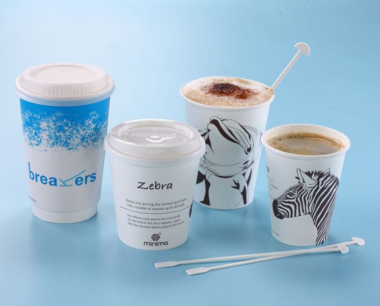 Minima certified compostable* drink stirrers (coffee sticks) are injection molded from a custom-blended alloy of biodegradable resins, also made by Minima.